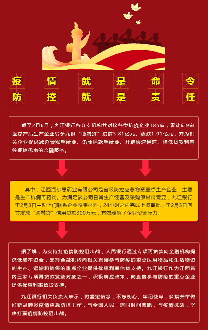九江銀行為抗“疫”企業(yè)授信3.81億元